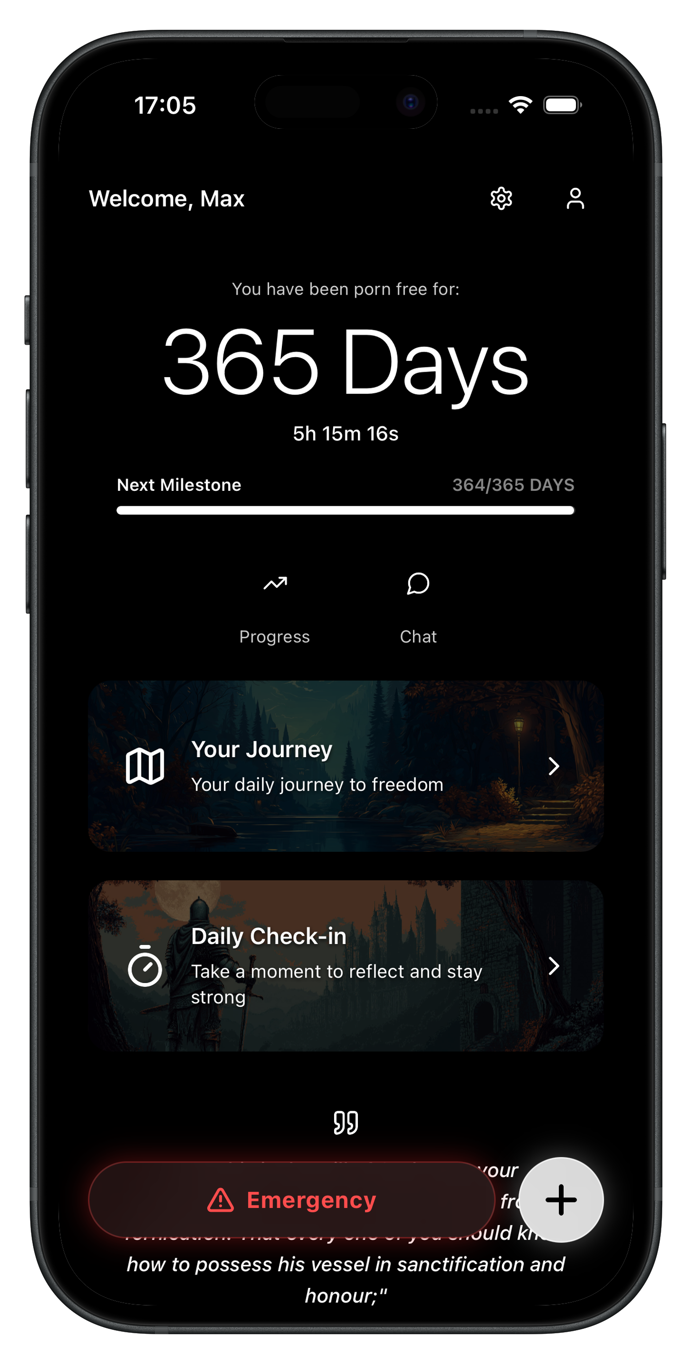 Monitor your streak, visualize progress, and celebrate milestones as you grow in discipline and purity.