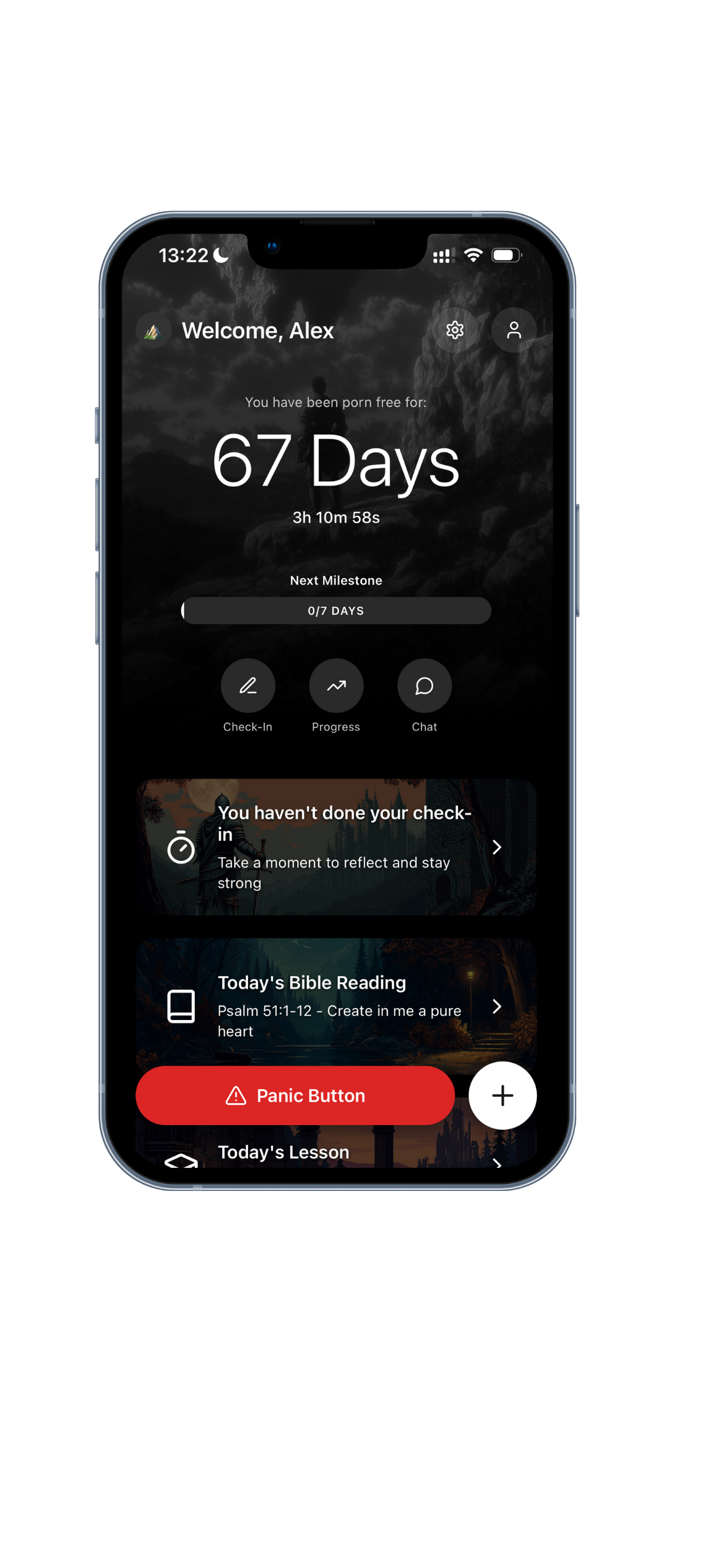 When temptation strikes, tap for immediate help. Instant access to God's Word, guided prayer, and your accountability partner—because you don't fight alone.